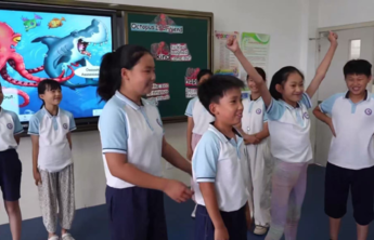 课堂上响起海底音效,学生闭眼想象“被歧视的章鱼”。突然一声“Shark coming!(鲨鱼来了)”,一名学生猛扑向前扮演被吞噬的斑点鱼。危急时刻,“章鱼”冲上前挠痒解救——这是孩子们自创的“救援密码”。扮演斑点鱼的学生事后摸著喉咙说:“原来被吞噬的感觉这么窒息!”单词“snap”就这样通过身体被记住。